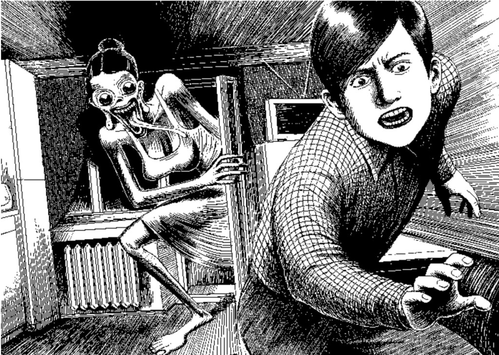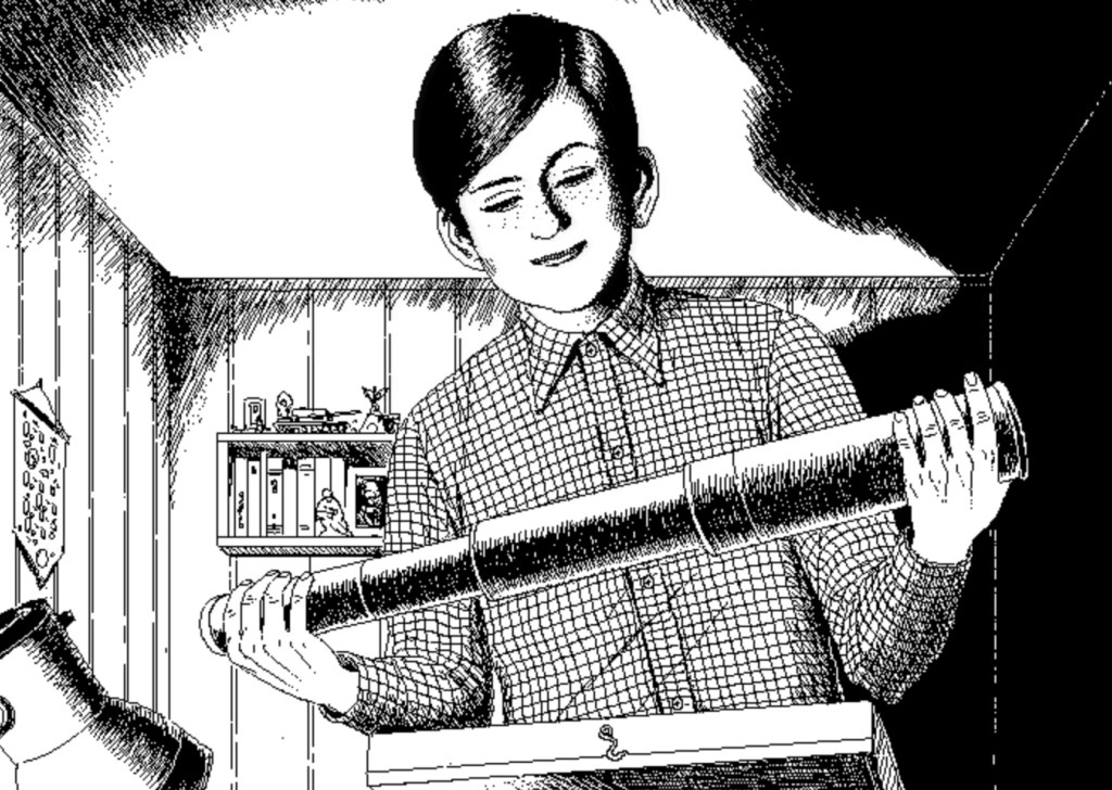 The window as a medium of voyeurism is not limited to cinema, as it is a recurring motif in various art forms. For instance, the Russian artist known as unomoralez has created pixel graphics that embody the aesthetics of the repulsive and the concept of childhood fears. In one of his comics, The Monster in the Telescope, he explores the idea of what is hidden behind the window, tapping into our deepest fears and anxieties.