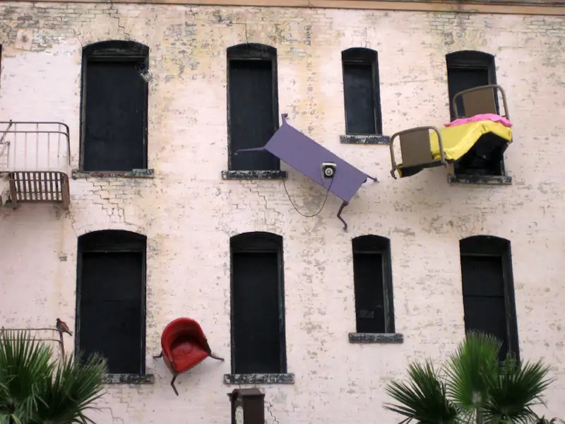 In an ironic twist that mirrors Goggin’s original vision, the building itself was ultimately demolished in 2014. However, the installation was not mere spectacle; it was an acute social commentary. It breathed new life into “unworthy” objects, turning the act of “throwing out” into a thought-provoking display that invited us to reflect on the lives we share with others, the objects we encounter, and the eery dimensions of the places we inhabit. By capturing the challenges of urban life, given the rising rates of homelessness and social isolation, currently overwhelming California, “Defenestration” still resonates. Even though the structure no longer stands, the installation remains a compelling tribute to both human creativity and the haunting beauty of defying societal norms, particularly in a city as unconventional as San Francisco.
