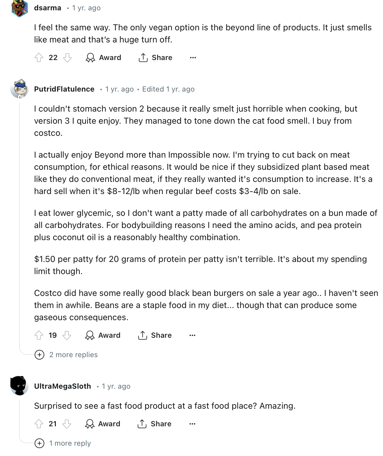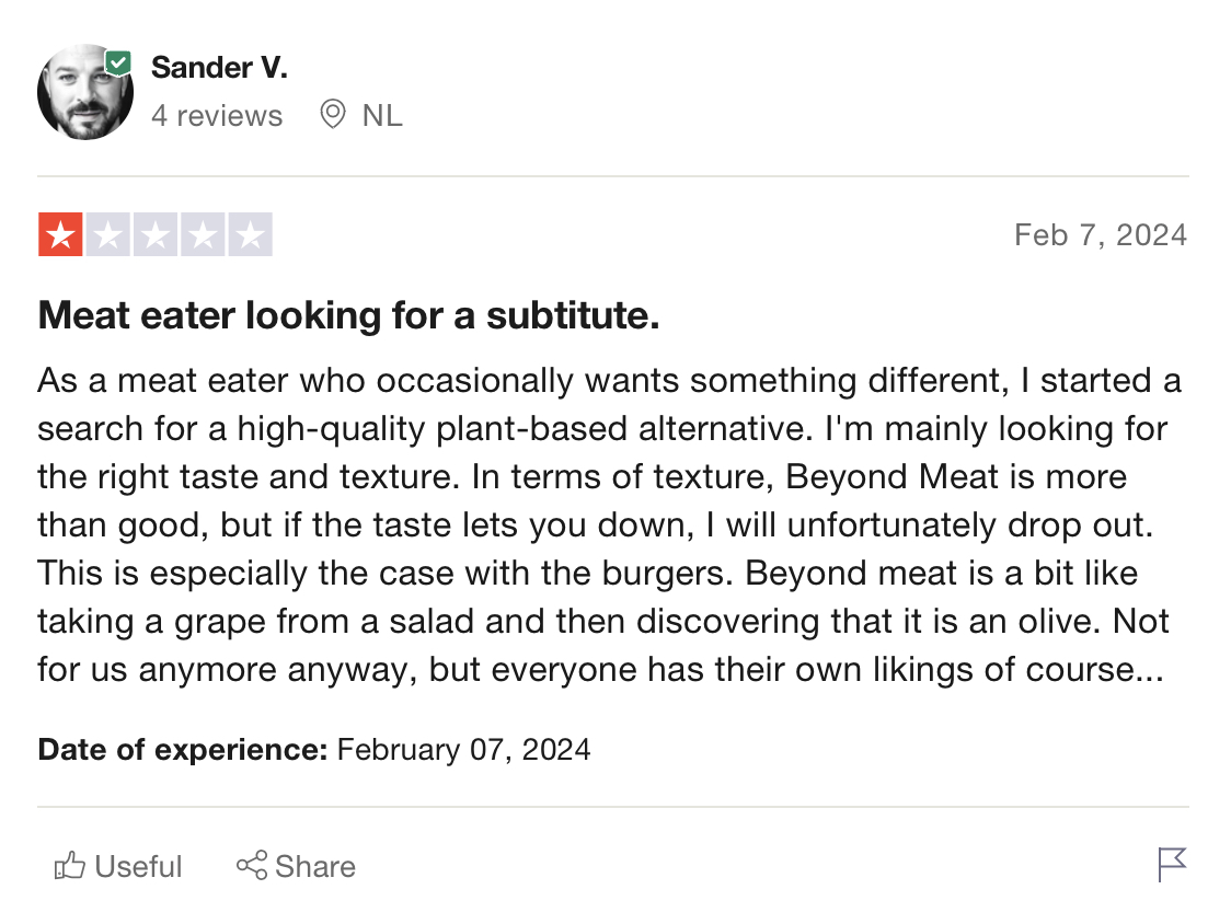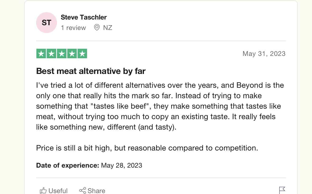 Then I remembered to check also BM reviews on consumer-to-business reviewing platform Trustpilot; BM is rated “Poor” with 2.3/5 with polar opinions: 39% of 5 stars vs. 43% of 1 star, consumers’ geographic range from US, NL, GB. One consumer shared that it tastes like beef and they liked it, the other one said it’s good in term of texture but not taste to the actual meat eater, so not enough “beef-tasting”. Again contrasting opinions with other consumers on vegan subReddit who didn’t like the “meat-pretending” taste of BM. There is an very detailed review from Sonia Rosa Lokey, US, who shared from a vegan perspective for almost 35 years, and eating vegan products since 1970s. She has a complaint about the original recipe change, as they started adding fava beans that being dried taste differently (again related to Reddit rant on overarching taste of BM when paired with other dishes.