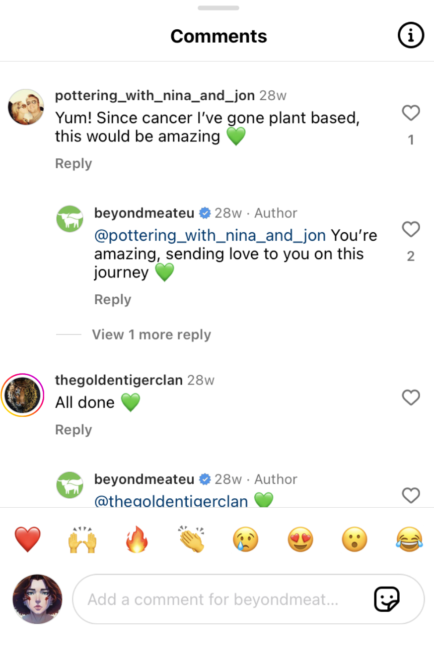 Then I went to check official Beyond Meat Europe Instagram Account. What are consumers=followers have got to say about the brand and their taste preferences there?