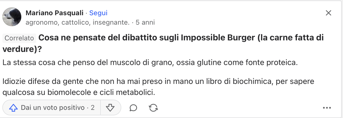 Last thing I did, I went to Quora to see what Italians are saying about cibo sintetico in general, as general consumers sometimes mention BM in this context, not knowing the difference. I was surprised to see those mixed comments between 4-6 years ago till now: there was skeptical sentiment. Major questions I have looked into: what is the taste of Beyond meat? What is the debate regarding the Impossible Burger (the meat made out of veggies)? What do you think of synthetic meat? In that latter question thread, some participants express skepticism about the term “synthetic” being applied to food, arguing that even lab-created vitamins are synthesized from natural sources like starch, not extracted directly from plants. Others share personal intentions to try cultured meat when it becomes affordable, noting its potential benefits such as safety from diseases. The conversation also mentioned two main approaches to creating synthetic meat: one using animal muscle cells and the other using plant cells enhanced with additives to mimic meat’s texture and taste.