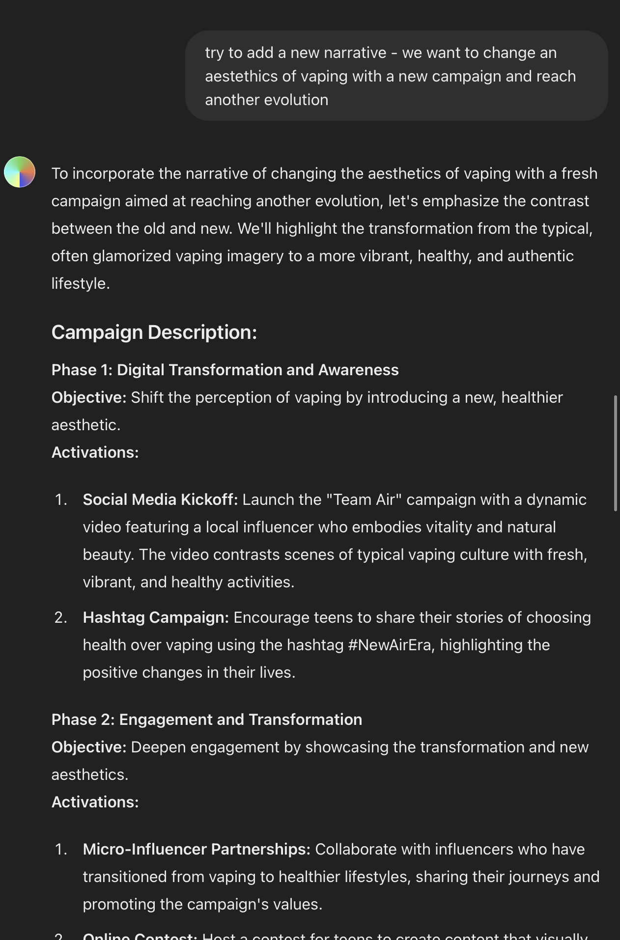 The comments uncover a significant trend: a growing support among teens for a vape-free lifestyle. This points to a pressing health concern surrounding vaping. “Vapers are attempting to portray vaping as healthy,” highlights the deceptive nature of these products. Moreover, the psychological impact is a grave concern, as expressed in the statement: “psychologically it’s the worst.” The comparison drawn between smoking and vaping, “at least smoking looks cool,” raises interesting questions about perception and the influence of visual appeal. Additionally, the discourse on “real tobacco cigs or e-cigs?” delves into the debate on the relative harms of these two forms of smoking. The simple yet powerful statement “I prefer to breathe oxygen” distills the essence of the argument against vaping. Lastly, the word “Ossiggeno” serves as a poignant reminder of the fundamental importance of clean, oxygenated air. This is how the idea was born — we should leverage on FOMO BEING TRENDY WITH DITCHING, DUMPING VAPING, hence Team Air campaign proposal.