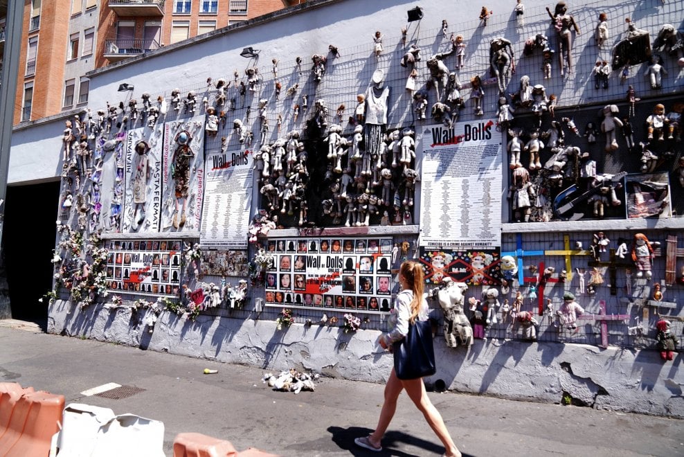 One such materialization stands near the Porta Ticinese: Il Muro delle Bambole is both an installation and an open wound. What started as an art installation in 2014 by journalist and activist Jo Squillo has become an evolving, public monument against gender-based violence, it’s a participatory memorial to women murdered by domestic or gender-based violence. People hang dolls — weatherworn, broken, hand-labeled — to represent individual victims. Each doll is a story. Each face a disappearance.
